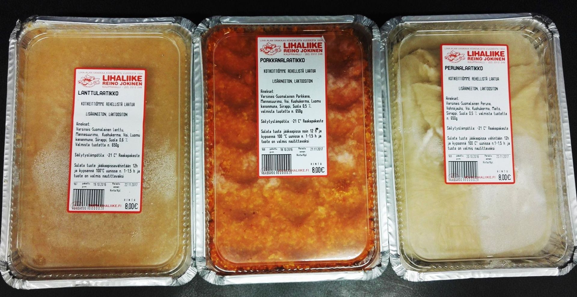 Jokisen kuuluisat raakapakaste Joululaatikot. Ne aidot markkinoiden ensimmäiset raakapakaste laatikot. Näissä maistat kotoiset vanhanajan rehdit maut. Massan voit sulattaa ja kypsentää omassa astiassasi niin ei tule rumia alumiinilaatikoita Joulupöytään. Valikoimassa peruna-, porkkana- ja lanttulaatikko.