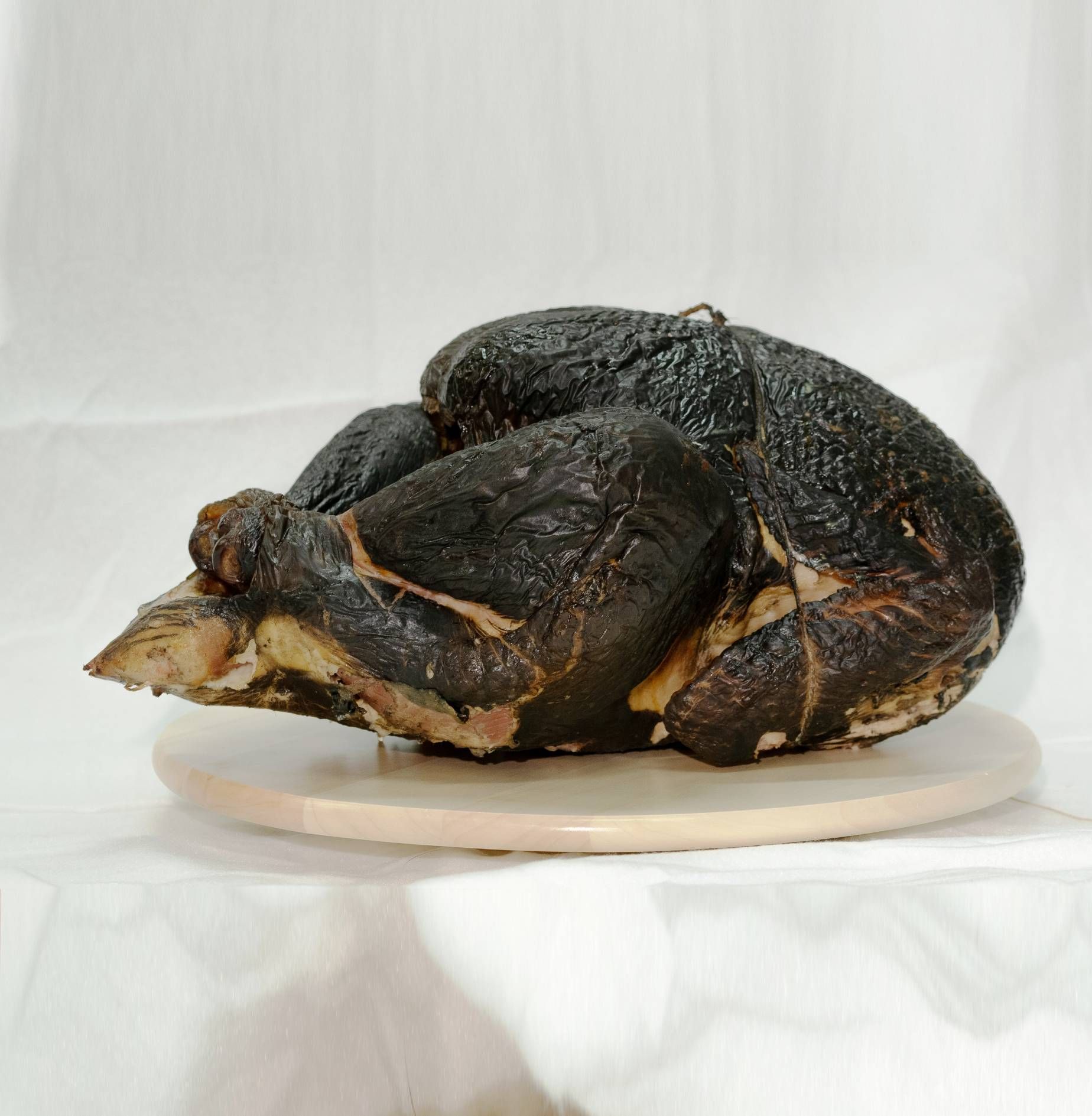 Savustettu kokonainen Kalkkuna. Voidaan myös puolittaa. Aidolla tulella mustaksi savustettua.